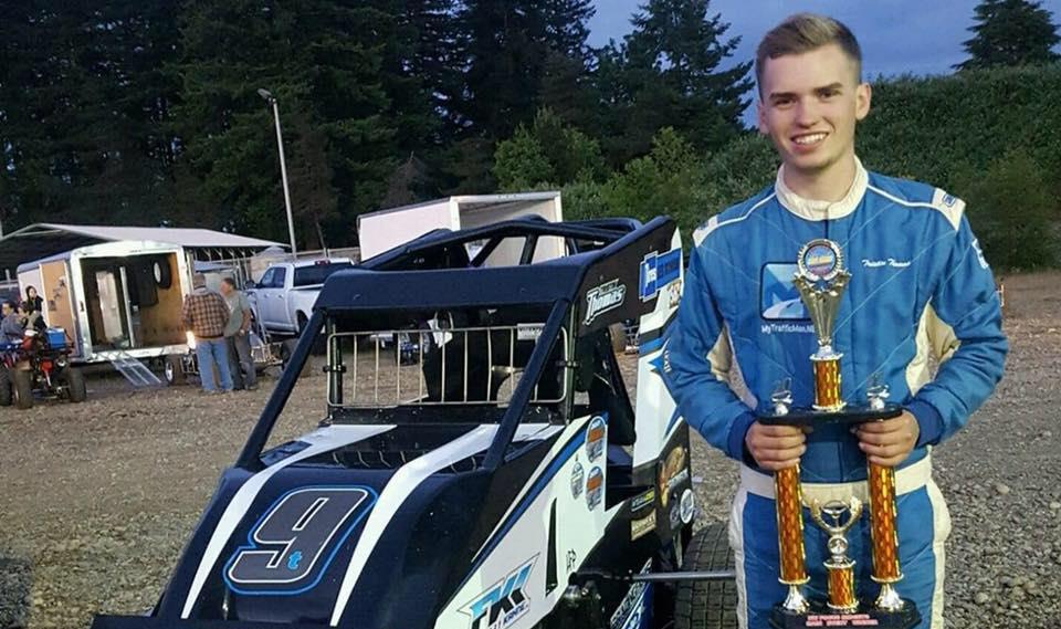 Forrest Grove, Ore driver Jake Gilman brought the field to the green flag during the 30 lap Wingless Sprint Series A-Main. It didn't take long for Tacoma's Jonathan Jorgenson to take the lead from Gilman. Tim Alberding of Salem, Ore sat in the third position, with Lindsay Barney of Portland, Ore in fourth. Jorgenson continued to pull away, as Gilman and Alberding battled for the second position. Alberding looked to the outside to try and make a pass on Gilman a handful of times but Gilman had more momentum on the low side of the raceway. Sherwood, Ore driver Rob Lindsey worked his way through getting by Barney and Alberding, setting his sights on Gilman for the second position, and taking over the spot looking to track down Jorgenson. Lap 22 saw the caution flag fly for the race leader Jorgenson as he spun to a stop in turn four giving the lead to Lindsey on the restart. Lindsey led Alberding, Gilman, Barney and Lance Hallmark of McMinnville, Ore to the green flag and quickly pulled away as Alberding and Gilman continued to battle for second. At the end of the feature Rob Lindsey picked up the win over Tim Alberding, Jake Gilman, Lindsay Barney and Lance Hallmark. Heat race winner earlier in the evening was Lindsey, with Jorgenson picking up the dash win. Lindsey also was fast time, and set a new track record.