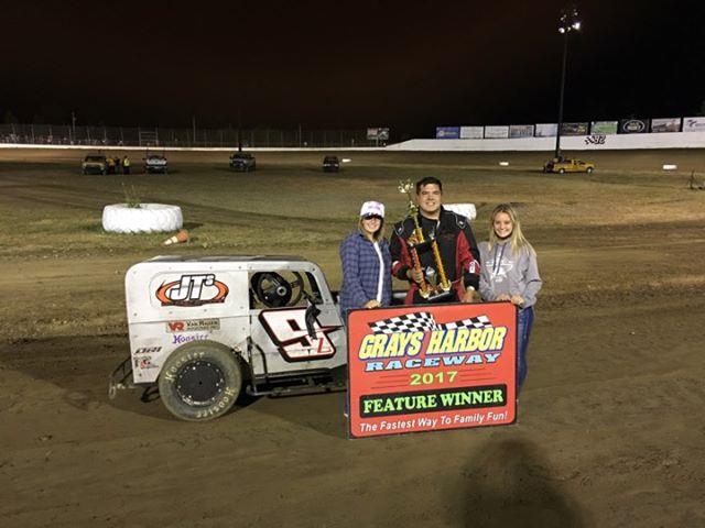 Zack Simpson of Aberdeen brought the field to the green flag during the Race of Champions feature jumping out to the early lead over Williston, North Dakota driver Travis Peery. Seabeck's Craig Moore raced side by side with Peery for second, but couldn't make the pass for position. Moore saw trouble looping the car in turn two, collecting a handful of cars. On the restart Simpson once again took the lead, looking to the low side of the raceway. Peery saw a hard charging Nick Trenchard of Kalamath Falls, Ore make a pass to the inside for second. Trenchard set his sights on Simpson for the lead as the battle for third between Kyler Moore of Seabeck, Peery, and Coburg, Ore driver Jesse Williamson was the race to watch. Kyler Moore and Williamson then made it an exciting battle for third. Trenchard continued to close in on Simpson making a pass out of turn four on lap 10.