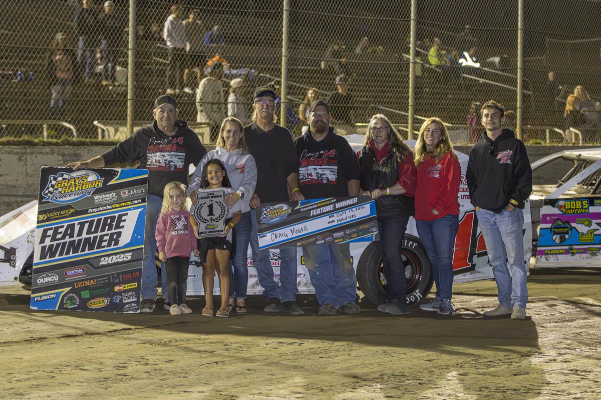 Levi Hillier was able to lead all 25 laps to pick up his third victory of the season at Grays Harbor in the Rudeen Racing 26. Levi Kuntz was able to hold off the multiple slide jobs from Destry Miller for consecutive laps on the multiple restarts to come home second, with Miller coming home 3rd, Jeff Dunlap, making his season debut coming home 4th. The heat race win went to Destry Miller, and quick time went was Levi Hillier. The 2025 track Champion is Destry Miller for back to back championships driving for Elma Auto Racing Hall of Famer Trev Wilson.